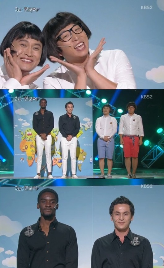 이날 ‘맛있는 한국어’ 코너의 문을 연 개그맨 송중근과 정범균은 외국인들이 쉽게 한국어를 사용할 수 있는 방법을 가르쳐 주겠다며 두 명의 외국인을 소개했다.