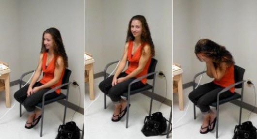 의료진이 전기자극 테스트기로 여성에게 계속 질문을 하고, 여성은 질문에 답을 하고 있다.