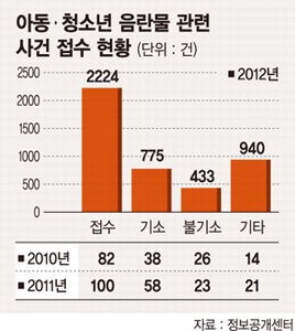 정보공개센터에 따르면 아청법 개정 전후 관련 위반 사건은 2010년 82건과 2011년 100건에서 2012년 2224건으로 1년 새 22배가량 급증했다.
