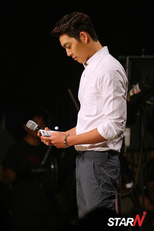 배우 김우빈이 15일 오후 서울 마포구 상암동에 위치한 CJ E&M 센터에서 진행된 Mnet 'M! Countdown (엠카운트다운/346회)'에서 대본을 읽고 있다.
