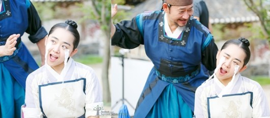공개된 사진 속 문근영은 종이로 눈물을 만들어 붙인 채 전광렬과 장난기 넘치는 포즈를 취하며 화기애애한 분위기를 전하고 있다.