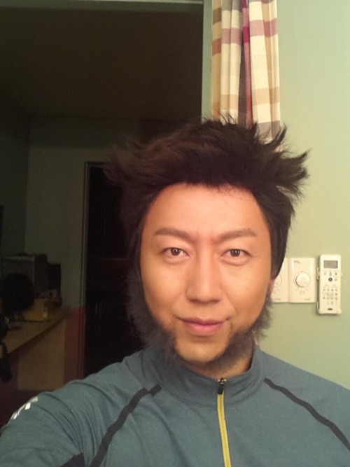 공개된 사진 속 김수로는 트레이닝복을 입고 얼굴에 구레나룻과 턱수염을 붙인 채 카메라를 바라보고 있다.