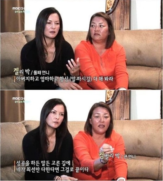 이날 방송에서 둘째 언니 켈리박은 학창시절 “아버지와 어머니가 항상 (말하시길) ‘다 해봐라’라고 했다”며 부모님의 교육철학을 전했다.
