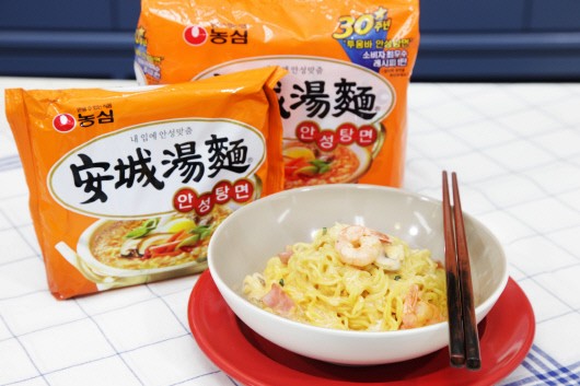 안성탕면에 우유와 치즈를 넣어 크림 파스타 느낌을 살린 '투움바 안성탕면'과 바지락과 부추로 시원하고 깔끔한 맛을 낸 '바지락 부추 안성탕면' 등이 광고를 통해 소개한 것.