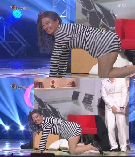 지난 15일 방송된 KBS 2TV ‘개그콘서트-뿜 엔터테인먼트’ 코너를 통해 김준호는 선미의 ‘24시간이 모자라’ 무대 의상을 입고 등장, 파격적인 엉덩이 춤을 선보였다.