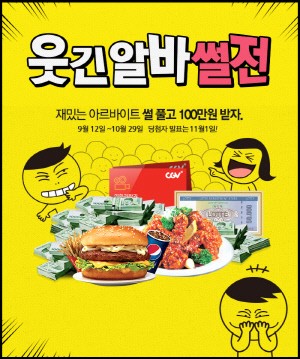 한편 직접 재미 있는 '알바 썰'을 등록하지 않더라도 재미있는 응모작에 '웃기면 추천하기' 버튼을 누른 회원 중 추첨을 통해 햄버거 세트, 치킨 교환권 등 간식세트가 제공된다.