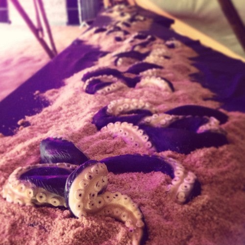 공개된 '바다 괴물 케이크' 사진 속 케이크는 북극 바다에 산다고 알려진 전설의 문어 크라켄이 모래 아래에서 수많은 발들을 내밀고 있는 듯한 형상을 하고 있다.