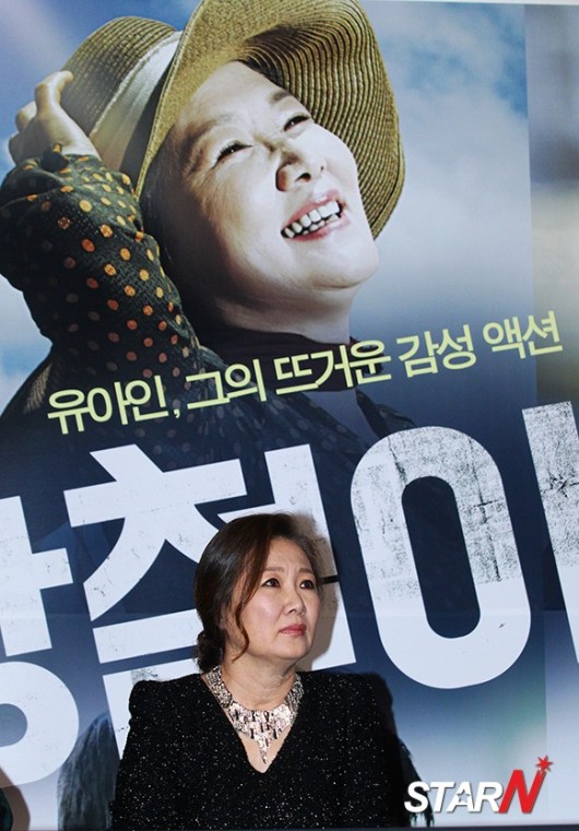 배우 김해숙이 25일 오후 서울 성동구 행당동에 위치한 왕십리 CGV에서 진행된 영화 ‘깡철이’ 언론시사회에 참석해 취재진을 바라보고 있다.