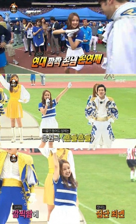 지난 5일 방송된 MBC 예능프로그램 ‘무한도전’ 응원전 특집에는 체조선수 손연재가 깜짝 등장해 모두를 놀라게 했다.