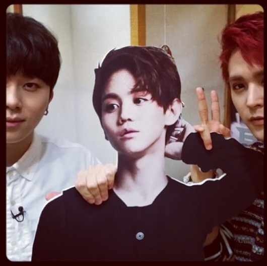 이어 윤두준은 양요섭 판넬을 이용한 장난스런 사진을 게재해 눈길을 끌었다.