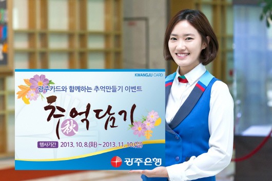 광주은행은 가을을 맞이해 다음달 10일까지 광주카드 '추(秋)억담기 이벤트'를 실시한다고 11일 밝혔다.