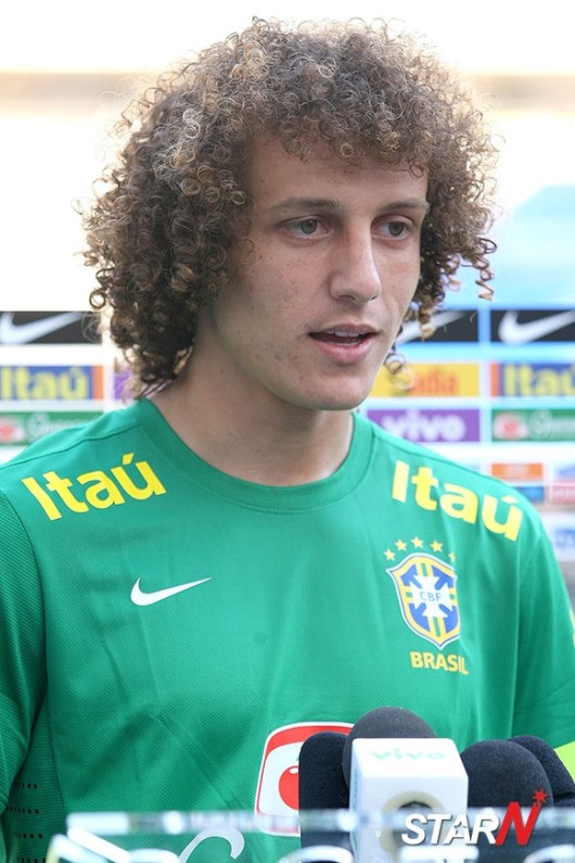 ‘축구국가대표팀 친선경기 한국 대 브라질’ 경기를 위해 내한한 브라질의 축구선수 다비드 루이스가 11일 오후 서울 마포구 성산동 서울월드컵경기장에서 진행된 공식훈련에 앞서 인터뷰를 갖고있다.