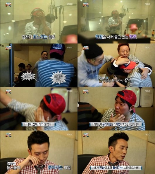 정형돈은 지난 26일 오후 방송한 MBC '무한도전-2013 자유로 가요제' 네 번째 편에서 단체곡을 녹음하다 눈물을 보였다.