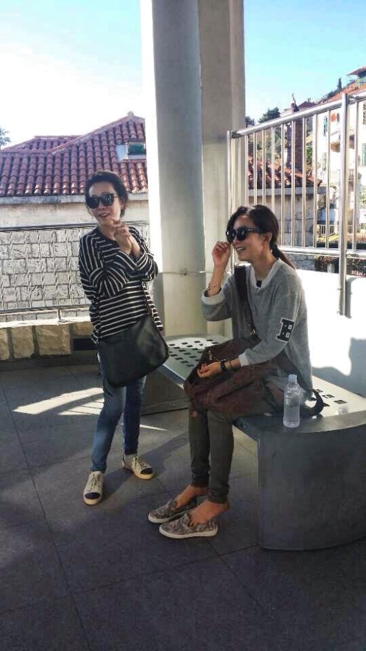 공개된 사진 속에는 윤여정과 김희애가 벤치 앞에서 잠시 휴식을 취하고 있는 모습이 담겨있으며, 둘 모두 여배우가 아닌 자연스러운 여행객의 모습을 선보이고 있다.