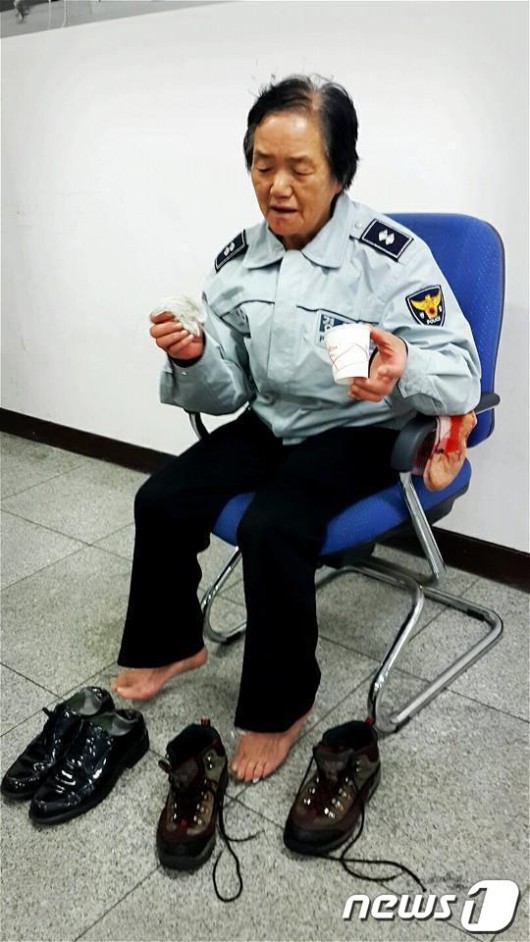 비에 젖어 한기에 오들오들 떨던 할머니는 곧 미소를 띄며 아들뻘, 손주뻘 경찰관들과 담소를 나눴다.