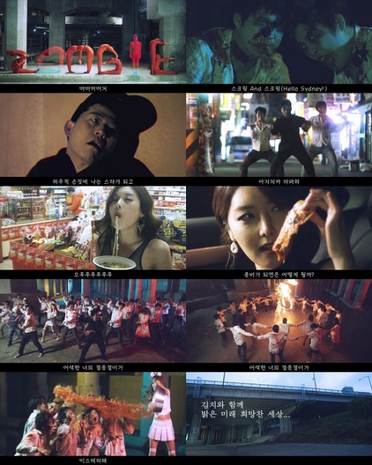 ‘한국에는 예로부터 좀비가 존재하지 않았다. 세계에서 유일하게 좀비의 백신이 있었기 때문인데..’라는 문구로 시작하는 뮤직비디오에는, 피투성이 좀비로 변신한 개그맨 홍인규와 이상구가 등장해 시선을 고정시킨다.