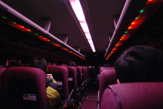 이제 취침. 버스기사도 출발하자마자 실내등을 꺼주는 '센스'를 발휘한다. 어느새 탑승객들은 너나할 것 없이 의자에 머리를 기댄 채 잠을 청한다. 그렇다고 깊은 잠에 들 턱이 없다. 오늘 일할 걱정에, 또 어떤 이는 벌써 퇴근길 걱정에 머리가 복잡하기 때문이다.