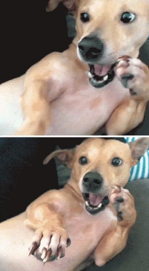 또 이 강아지는 무엇인가에 크게 놀란 뒤, 고개를 숙인 채 충격을 잊으려는 듯 머리를 마구 털기도 한다.
