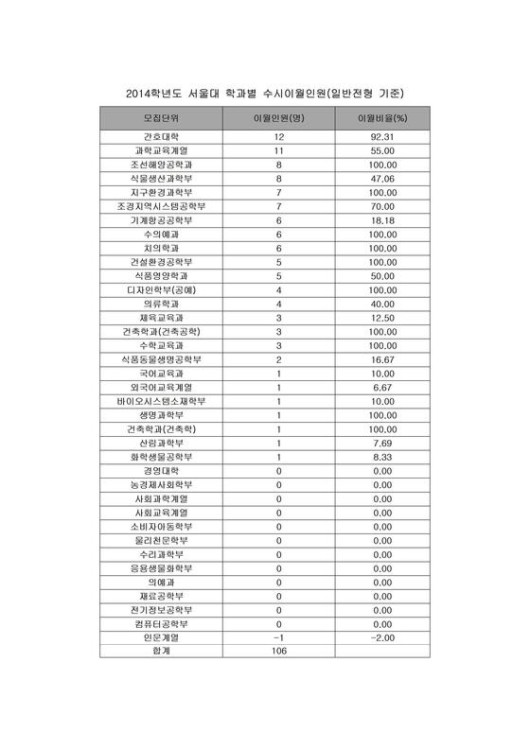 2014학년도 서울대 수시모집 결과 정시로 이월되는 인원이 지난해보다 2배 이상 늘어난 것으로 나타났다.