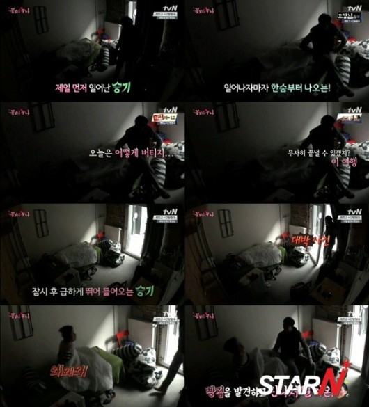 잠시 뒤, 승기는 주변을 탐색하러 나갔다 급하게 다시 숙소로 뛰어 들어왔다. 이어 그는 “대박사건”이라며 소리쳤다.