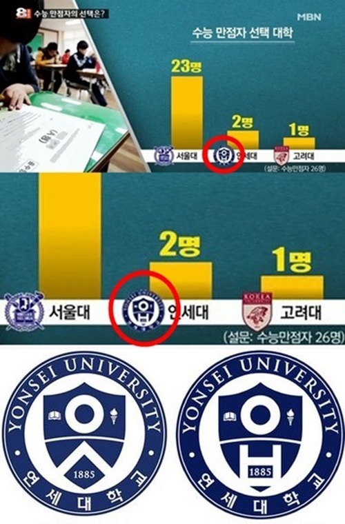 수능 만점자와 관련한 리포트 중 자료 화면으로 서울대, 연세대, 고려대 마크를 내보냈다. 이 과정에서 이 중 연세대 마크가 아닌 'ㅇㅂ'가 새겨진 마크를 내보낸 것이다.