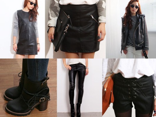 시크한 무드를 살려 주는 스키니 가죽팬츠는 다리를 길고 날씬하게 표현해준다. 구멍이 뚫린 아일릿 디테일은 독특하면서 감각적인 무드를 배가시킨다. 지퍼디테일이 가미된 가죽스커트 또한 슬림하게 떨어지는 라인에 미니멀한 길이감으로 캐주얼한 룩에 딱이다.