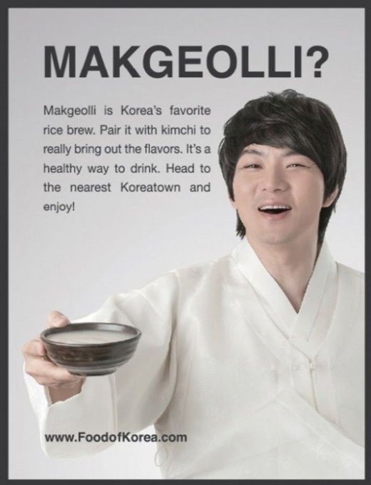 6일자 월스트리트 저널 유럽판 1면에는 흰색 한복을 차려입은 배우 송일국이 막걸리 한 잔을 건네며 웃고있는 광고가 실렸다.