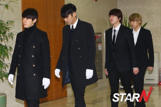 그룹 슈퍼주니어가 8일 오전 서울 구로구 구로동 고려대학교 구로병원 장례식장에서 진행된 부친상, 조부모상 발인식에 참석했다.