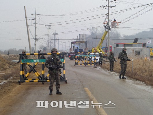한국전력은 지난 7일부터 9일까지 철원, 화천, 양구, 인제, 고성 등 북한 접경지역 주요 군사시설에 대해 군부대와 합동으로 대규모 전력설비 고장복구 훈련을 시행했다고 밝혔다. 8일 철원군 민통선 지역에서 육군 3사단과 함께 총 70여명의 인원이 군부대 제설장비 및 화재진압 장비와 한전의 전력설비 복구 장비 등으로 합동훈련을 진행하고 있다.
