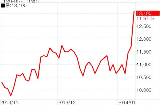장중 한때 1만3350원까지 치솟으며 신고가를 경신했다.
