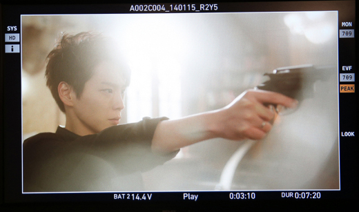 공개된 사진에는 깔끔한 헤어스타일에 시크한 블랙 컬러의 셔츠를 입고 무심한 듯 소매를 걷어 올린 채 촬영 중인 힘찬의 모습이 담겨 있다. 힘찬이 손에 쥔 권총 한 자루와 날카로운 시선, 오똑한 콧대는 묘하게도 서늘한 분위기를 자아내고 있다.