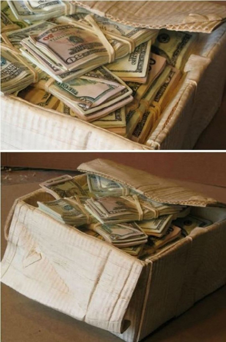 공개된 2장의 사진에는 종이 상자 안에 돈다발 뭉치들이 수북이 쌓여있는 모습이 담겨있다.
