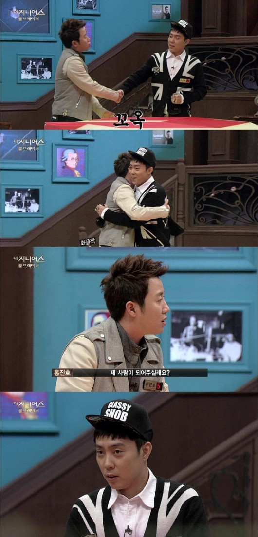 또한 당황한 홍진호는 급히 “절대 아니다”라고 답하며 은지원을 가볍게 포옹하고는 “제 사람이 되어주실래요?”라고 깜짝 고백(?)해 코믹한 장면을 연출했다는 후문이다.