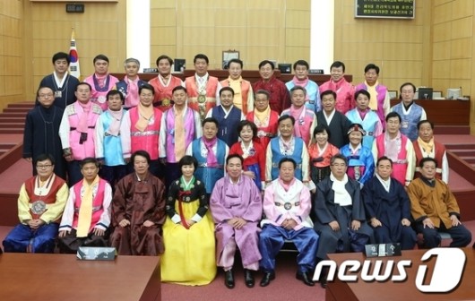 전북도의회 의원들이 한복을 입고 새해 첫 회의를 열어 눈길을 끌었다.