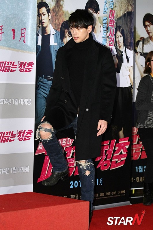가수 비가 20일 오후 서울 광진구 자양동 롯데시네마 건대입구점에서 진행된 영화 ‘피끓는 청춘’ VIP 시사회에 참석해 포토타임을 갖고 있다.