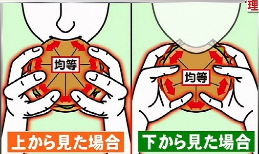 이렇게 하면 햄버거에 균일한 힘이 작용해 빵과 빵 사이에 있는 내용물이 새는 것을 방지할 수 있다는 설명이다.