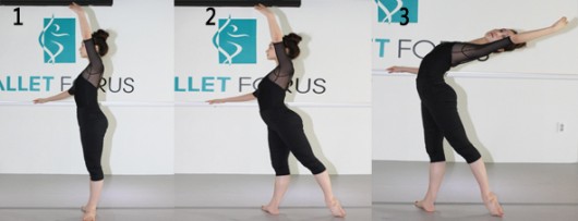 3. 같은 자세를 유지한 상태에서 상체를 서서히 뒤로 굽힌다. 상체가 최대한 뒤로 젖혀진 상태에서 동작의 흐트러짐 없이 15초간 정지자세를 유지한다.