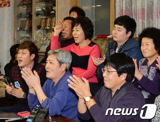 스피드스케이팅 여자 1000m 경기 중계가 임박한 13일 오후 10시30분쯤 서울 동대문구 전농동 이상화의 자택에는 일가 친척들과 취재진이 몰려 거실을 가득 메웠다.