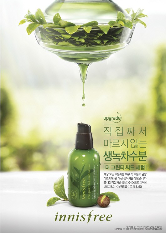 화장품 브랜드 이니스프리가 오는 3월 1일 제주 무농약 녹차를 직접 짜서 만든 생녹차수를 물 대신 100% 함유한 '더 그린티 씨드 세럼'을 출시한다.
