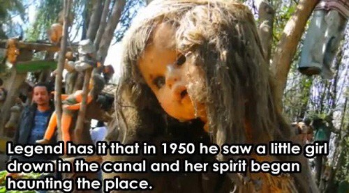 인형의 섬은 호수 근처에 살던 한 주민이 호수에서 익사한 여자아이의 영혼을 달래기 위해 하나 둘 매달기 시작한 것이 50년 동안 이어져 지금은 수천개에 달하는 인형들이 나무에 매달려 있다.