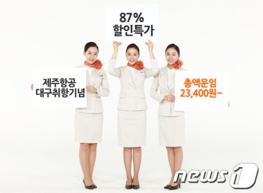 제주항공은 ‘대구~제주’ 노선 취항을 기념, 내달 3일부터 31일까지 탑승가능한 ‘김포~제주’, ‘부산~제주’, ‘청주~제주’ 등의 노선 편도 항공권도 최대 76% 할인된 가격으로 판매한다.