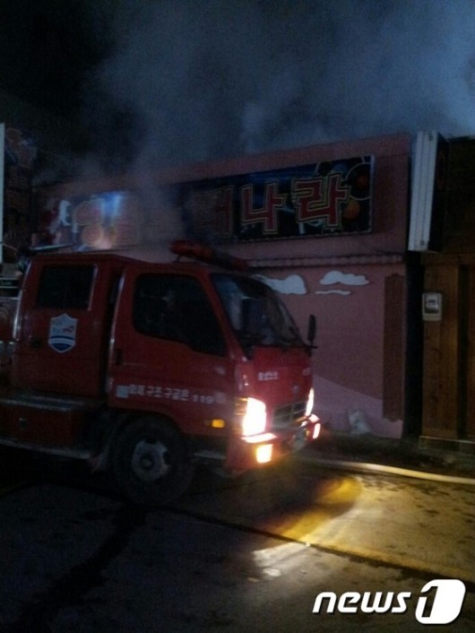 노래방에서 화재가 발생, 1명이 화상을 입어 병원으로 옮겨졌으나 숨졌다.