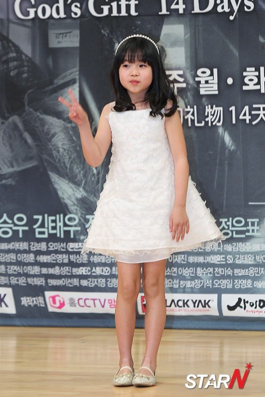 아역배우 김유빈이 27일 오후 서울 양천구 목1동 SBS 사옥에서 열린 SBS 새 월화드라마 '신의 선물-14일' 제작발표회에 참석해 포토타임을 갖고 있다.