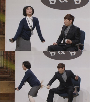 ‘코미디빅리그’ 썸&쌈의 이진호가 박나래 엉덩이에 만행을 저질렀다.