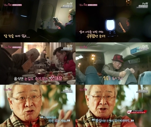 뿐만 아니라 식사시간에도 이순재는 식사를 마다하고 연신 ‘열공’하는 모습을 보였다. 식사도 하지 못했지만 이순재는 웃음을 잃지 않고 무사히 숙소에 도착했다.