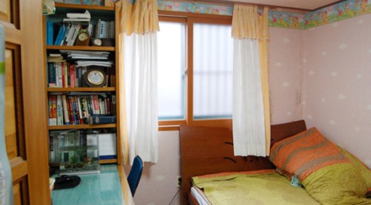 또한 수납공간이 부족했던 방에 높은 책장을 설치해 수납공간을 넓혔다. 종류별로 책을 꽂을 수 있는 넉넉한 크기의 책장은 학습능률을 높이는데 도움을 준다. 더불어 손이 닿기 힘든 책장 위칸은 잘 보지 않는 책을 보관해 놓는 용도로 사용하기 적합하며, 문이 달려있어 먼지가 쌓이는 것을 막아준다.