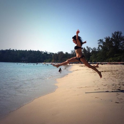 공개된 사진 속 바다는 블랙 비키니 수영복을 입고 점프하는 모습을 선보이고 있어, 마치 도약하는 체조선수를 연상케 한다.