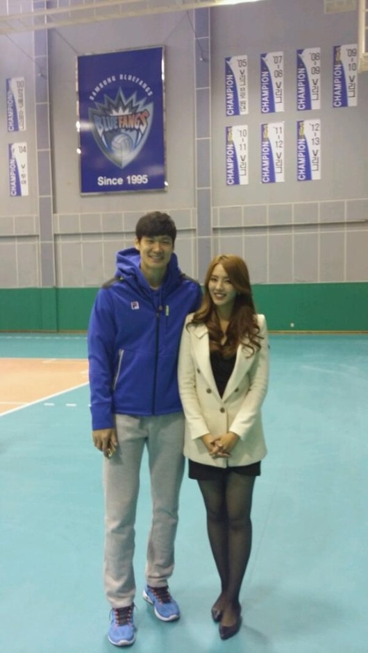 해당 사진은 지난 3일 정인영 아나운서가 자신의 트위터에 올린 것으로 “저를 이리 아담해 보이게 만든 남자, 이선규 선수”라고 밝힌 바 있다.