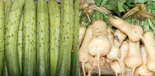 무와 오이는 영양 면에서 좋지 않은 궁합이다. 오이를 칼질하면 아스코르비나아제라는 효소가 나오는데, 이 효소는 비타민C를 파괴하는 기능이 있어 무의 비타민 성분을 없애는 역할을 한다. 당근 역시 오이와 함께 섭취하면 오이의 아스코르비나아제 성분에 의해 비타민이 파괴된다.