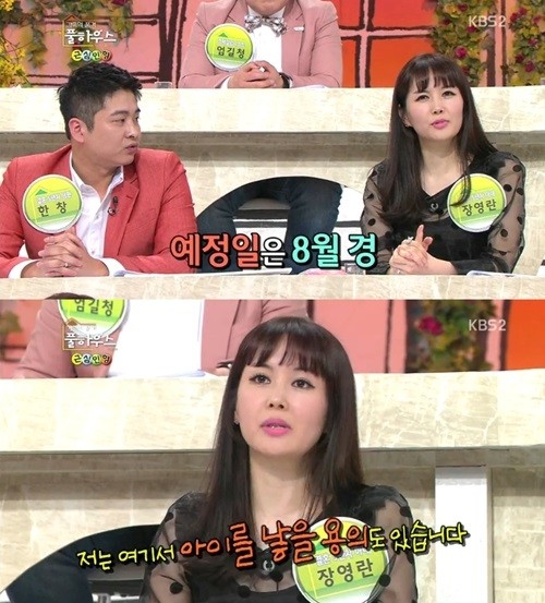28일 방송된 KBS 2TV ‘가족의 품격 풀하우스’에 출연한 장영란은 남편 한창 씨와 함께 출연해 둘째 임신 소식을 밝혔다.